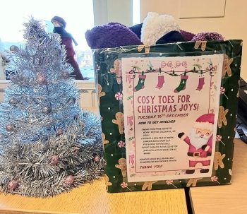 Palliative Clinical Nurse Specialist, Lorraine Collins, thanked everyone who contributed to the Christmas Cosy Toes collection and said, “In the hustle and bustle of the holiday season, it is easy to overlook the small comforts. However, seeing staff come together to provide these ‘cosy toes’ reminds us all of the powerful spirit of community within the hospital.
